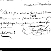 | Request for Issue of Powder for Proving Cannon at Cecil Furnace | Collection: Consolidated Correspondence File, 1794-1890. (RG92) | [unknown] |