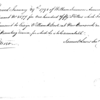 | Receipt of William Simmons for transmit to Ensign William R Boote at New Brunswick recruiting service | Collection: Receipts for Moneys Advanced (Advances), 1793-1855. (RG217) | B: 3 |