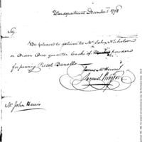 | Request for Issue of Powder to Prove Pistol Barrels | Document |