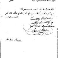 | Request for Issue of Banners for a Warship | Collection: Consolidated Correspondence File, 1794-1890. (RG92) | Box 1203 ("War Dept") |