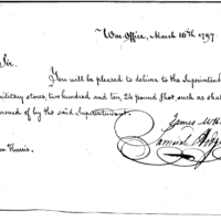 | Order to Deliver Shot | Collection: Correspondence, Reports, Returns, Bills, Accounts Current' Statements, Receipts, Vouchers and Contracts of Philadelphia Supply Agencies (Coxe and Irvine Papers), 1794-1842. (RG92) | B:129 |