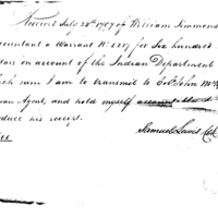 | Receipt from William Simmons warrant on account of Indian Department for Colonel John McKee Indian Agent | Document |
