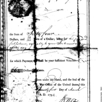 | Payment Warrant, for Robert Swails, Quartermaster of Battalion of First Regiment of Levies. | Collection: Muster Rolls of Volunteer Organizations: War with Northwest Indians, 1790-1795. (RG94) | B:2 |