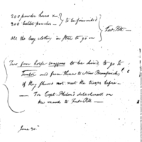 | Note from the War Office ordering powder horns and levies' clothing to be forwarded to Pittsburg and wagons to Trenton | Document |