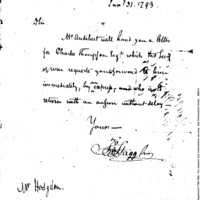 | Note from War Office requests delivery of letter from Charles Thompson to Secretary of War | Collection: Second Congress: Reports and Communications Submitted to the Senate by the Secretary of the Treasury [2A-F2] (RG46) | B:2 |