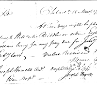 | Request for payment to William Biddle | Collection: Receipts for Moneys Advanced (Advances), 1793-1855. (RG217) | B:1/3 |