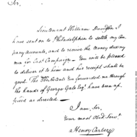 | Letter from Henry Carbery on settlement of accounts | Collection: Second Congress: Reports and Communications Submitted to the Senate by the Secretary of the Treasury [2A-F2] (RG46) | B:2 |