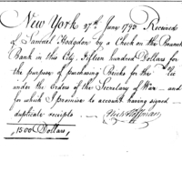 | Receipt from Nicholas Hoffman to Samuel Hodgdon for purchasing bricks | Collection: Receipts for Moneys Advanced (Advances), 1793-1855. (RG217) | Box 1, Folder 5. |