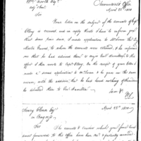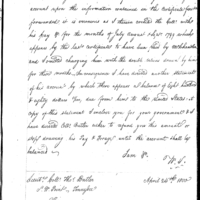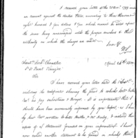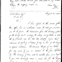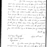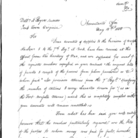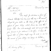 | Simmons Writes Ball to Request Forwarding of his Authority or Contract, as well as Duplicates of his Vouchers |
