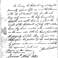 | Affidavit of John Kumel | Collection: Miscellaneous Numbered Records (Manuscript file) 1775-1790's. (RG93) (M859) | B: 384 |