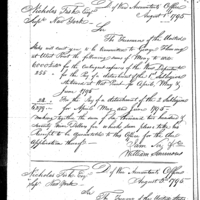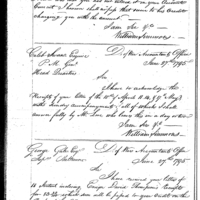 William Simmons discusses pay, finance and accounting with Thomas Love Collection: Miscellaneous Letters Sent by the Accountant of the War Department and the Second Auditor, Apr 14, 1795-May 5, 1886. (RG217) Letterbook A, P. 100