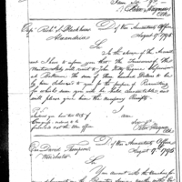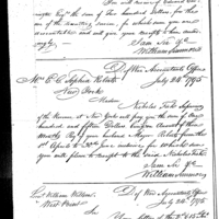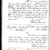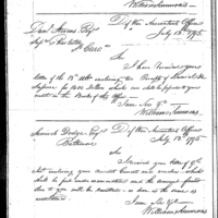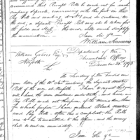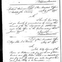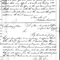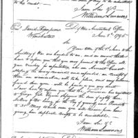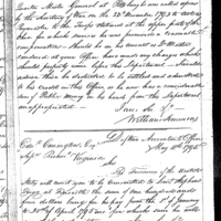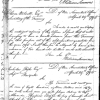 William Simmons discusses pay, finance, and accounting with John Crawford Collection: Miscellaneous Letters Sent by the Accountant of the War Department and the Second Auditor, Apr 14, 1795-May 5, 1886. (RG217) Letterbook A, P.7