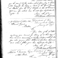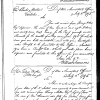 William Simmons discusses pay, finance and accounting with Caleb Gibbs Collection: Miscellaneous Letters Sent by the Accountant of the War Department and the Second Auditor, Apr 14, 1795-May 5, 1886. (RG217) Letterbook A, P. 79
