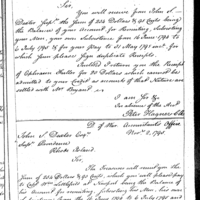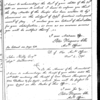 Encloses claims Collection: Miscellaneous Numbered Records (Manuscript file) 1775-1790's. (RG93) (M859) Letterbook A, P. 282