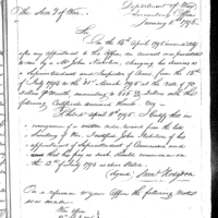 Simmons discusses pay, finance and accounting with Timothy Pickering Collection: Miscellaneous Letters Sent by the Accountant of the War Department and the Second Auditor, Apr 14, 1795-May 5, 1886. (RG217) Letterbook A, P.106
