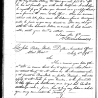 William Simmons discusses pay, finance and accounting with Paul Perrault Collection: Miscellaneous Letters Sent by the Accountant of the War Department and the Second Auditor, Apr 14, 1795-May 5, 1886. (RG217) Letterbook A, P.58