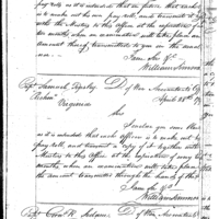William Simmons discusses pay, finance and accounting with Captain James Sever, USN Collection: Miscellaneous Letters Sent by the Accountant of the War Department and the Second Auditor, Apr 14, 1795-May 5, 1886. (RG217) Letterbook A, P. 55