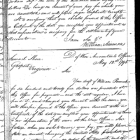 Simmons discusses pay, finance and accounting with Daniel DeSaussure Collection: Miscellaneous Letters Sent by the Accountant of the War Department and the Second Auditor, Apr 14, 1795-May 5, 1886. (RG217) Letterbook A, P. 59