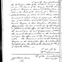 William Simmons discusses pay, finance and accounting with Joseph Nourse Collection: Miscellaneous Letters Sent by the Accountant of the War Department and the Second Auditor, Apr 14, 1795-May 5, 1886. (RG217) Letterbook A, P.31