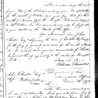 William Simmons discusses pay, finance, and accounting with John Chester Collection: Miscellaneous Letters Sent by the Accountant of the War Department and the Second Auditor, Apr 14, 1795-May 5, 1886. (RG217) Letterbook A, P.32