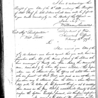 Confirms receipt of letter Collection: Miscellaneous Numbered Records (Manuscript file) 1775-1790's. (RG93) (M859) Letterbook A, P. 280
