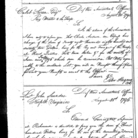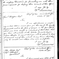 Simmons discusses pay, finance and accounting with Bennet Pemberton Collection: Miscellaneous Letters Sent by the Accountant of the War Department and the Second Auditor, Apr 14, 1795-May 5, 1886. (RG217) Letterbook A, P.12