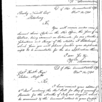 William Simmons discusses pay, finance and accounting with John Chester Collection: Miscellaneous Letters Sent by the Accountant of the War Department and the Second Auditor, Apr 14, 1795-May 5, 1886. (RG217) Letterbook A, P.80