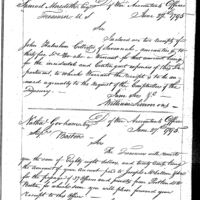 William Simmons discusses pay, finance and accounting with Nathaniel Gorham Collection: Miscellaneous Letters Sent by the Accountant of the War Department and the Second Auditor, Apr 14, 1795-May 5, 1886. (RG217) Letterbook A, P. 99