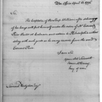 | Instructions for Sloop William | Collection: Second Congress: Reports and Communications Submitted to the Senate by the Secretary of the Treasury [2A-F2] (RG46) | B:4 |