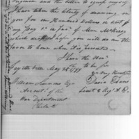 | Lieutenant Evans notification of draw on pay for purpose of joining Captain Bishops Company, Winchester Virginia | Collection: Receipts for Moneys Advanced (Advances), 1793-1855. (RG217) | B: 7 |