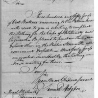 | Order for Buttons for Corps of Artillerists and Engineers | Collection: Correspondence, Reports, Returns, Bills, Accounts Current' Statements, Receipts, Vouchers and Contracts of Philadelphia Supply Agencies (Coxe and Irvine Papers), 1794-1842. (RG92) | B: 192 |