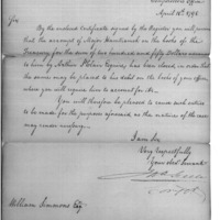 | Closed Account of Major Hamtramch for Funds Advanced Him by Arthur St. Claire | Collection: Letters Received by the Accountant of the War Department, Nov 24, 1794-Ded 23, 1817. (RG217) | B: 17; F:S-1798 |