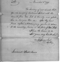 | Lt. Morris Ordered to Accompany Lt. Sohier | Collection: Post Revolutionary War Papers, 1784-1815. (RG94) | B: 111 |