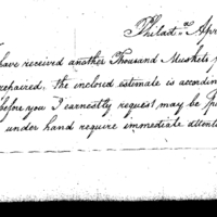 Letter covering an estimate for the cost of repairing and cleaning 1,000 muskets. Mentions the need to repair other muskets soon before they are ruined.
