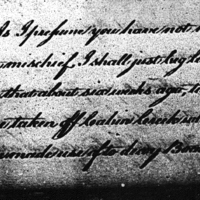 As I (undecipherable) you have not heard of the late mischief. I shall just beg leave to inform you that about six weeks ago, two men were taken off (the rest of the letter is undeipherable)