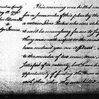 This morning was killed within six or seven miles of this place by the Indians, a certain Lewis Parker who was at his work, it will be unnecessary for me to say any thing more with respect to the murder as I have enclosed you an affidavit and as to the murder of two mine men I am satisfied of its certainty, but have had no opportunity of finding the man who was with them when they were killed, no other