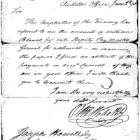 The Auditor of the Federal Treasury writes that the Comptroller of the Federal Treasury has referred to him the accounts of William Blount, late Deputy Paymaster General of North Carolina, for settlement. Wolcott writes that he finds no abstracts of the payments; asks Howell to transmit such abstracts if they are in the Office of Army Accounts.
