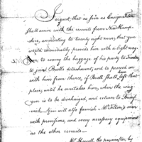 Knox orders Bray to provide Ensign Tilton and his twenty eight men with a wagon to convey their baggage as well as provisions and necessary equipment.