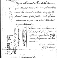 Approves payment to Joseph Howell Junior, Paymaster General, to be given to Samuel Meredith.