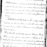 This document, dated 17 Feb 1792, is an ammendment to the original Treaty of Holston, dated 2 July 1791. This ammendment changes the amount paid by the United States to the Cherokee Nation for "relinquishment" of their lands.