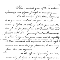 Letter, directs Rodgers to move recruits to rendezvous at New Brunswick New Jersey. Travel by boat from Albany, then march.