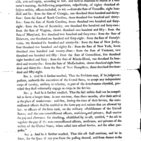 This is an Act of Congress that authorizes the President to require the executives of the several States to organize, arm, equip, and hold in readiness eighty thousand effective militia to be apportioned among the States in the numbers specified in this Act. It states also that the militia shall not be compelled to serve longer than three months during any single tour of duty. Officers of the militia are entitled to the same pay as those of the same rank in the regular army.