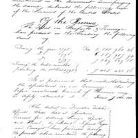 Responding to a request from the Secretary of War, this is a presentation of US revenues: duties, imports, and finances from 1795-1798. It discusses debt: interest and the proposed payment. It includes a list of expenditures: diplomatic expenses, military pensions, light house estimates, annuities and grants, treaties with the Barbary Pirates, Indian expenses, military and naval establishments. It discusses plans to recoup the money by obtaining more loans and a proposed treaty with Great Britain.