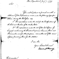 McHenry asks Simmons to furnish him with a statement of the expenditures made under the Act of Congress for fortification of American ports as well as the Act which allowed the President to procure arms and ammunition and issue them to the militia.