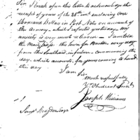 | $1000 in Post Notes Received One Day Late | Collection: Post Revolutionary War Papers, 1784-1815. (RG94) | B:12 |
