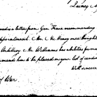Forwards officer recommendation from Henry Knox of Jonathan Williams, Esq. Adams mentions McHenry's previous endorsement of Williams as an artillery major, and adds his own brief recommendation.