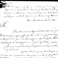 | [view document] (1 pages) | ZZQ05a (1 pages) | Collection: Letters Sent (General Correspondence) by the Secretary of War and Commissioner of Pensions, 1800-1866. (RG15) | V: 1, P:1 |