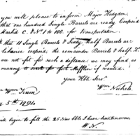 | William Nickels return of powder and ready for transportation | Document |