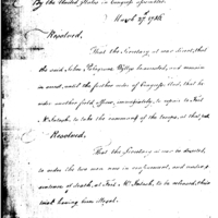 | Orders to take command on the Ohio | Collection: 201 Files of the Liaison and Determination Unit, Departmental Records Branch, Office of the Adjutant General, 1953-1962. (RG407) | B: 21, F: Fish, Nicholas; Revelutionary War |