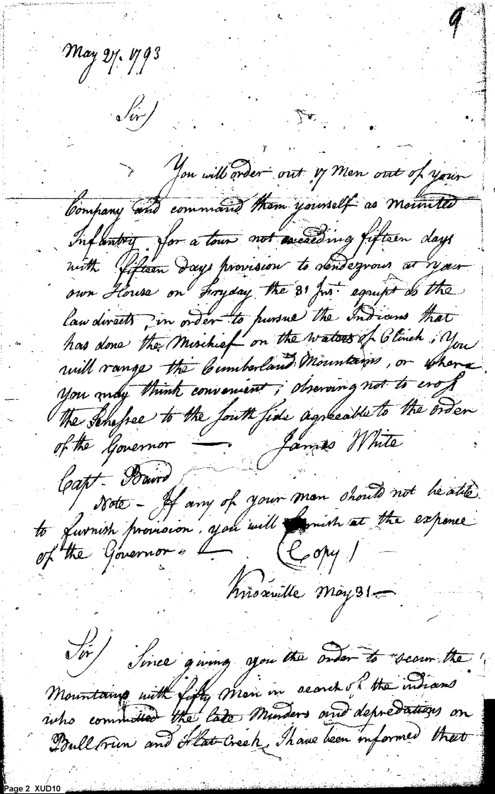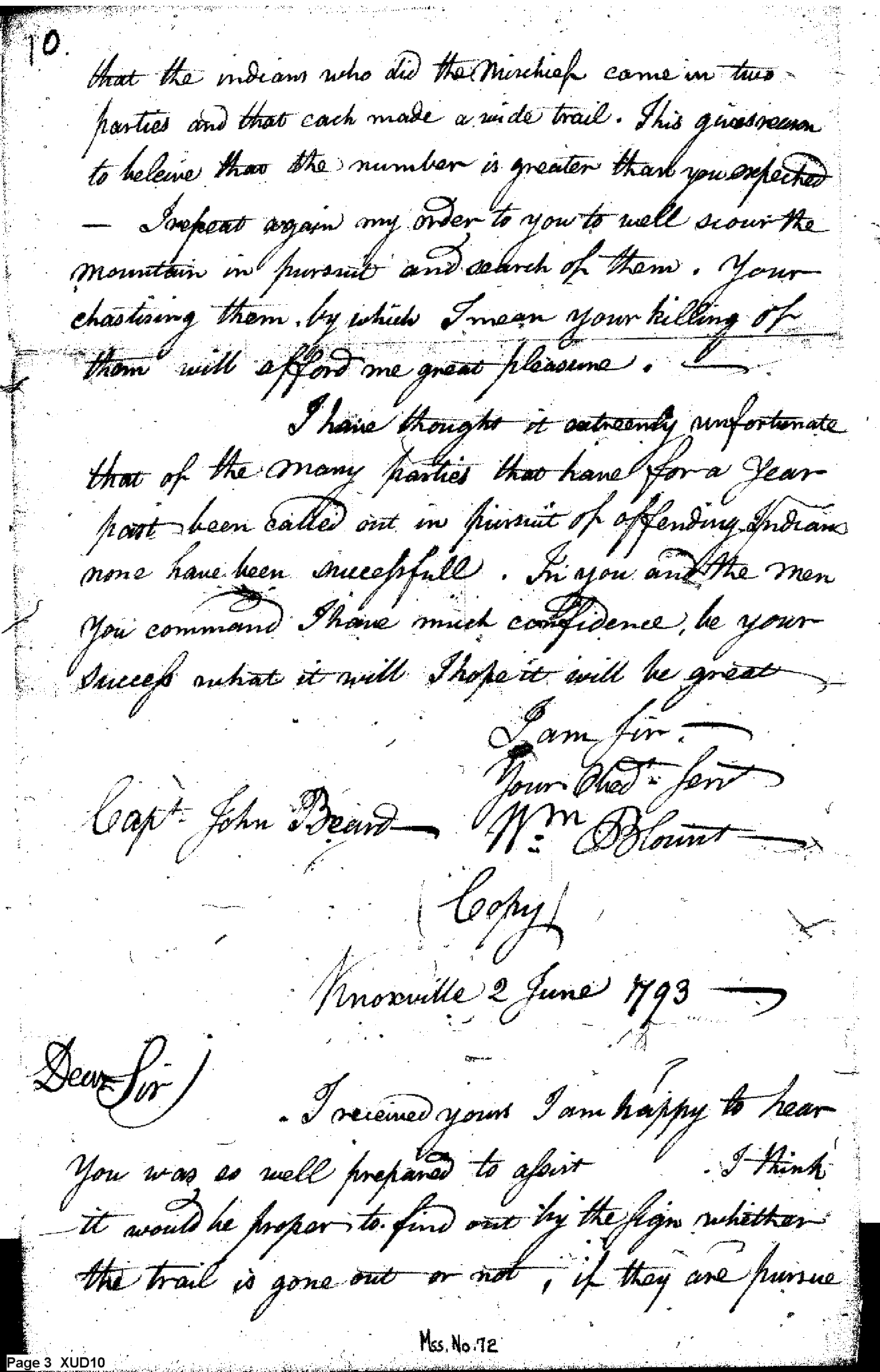 - Document: Governor Blount's Orders to Captain John Beard